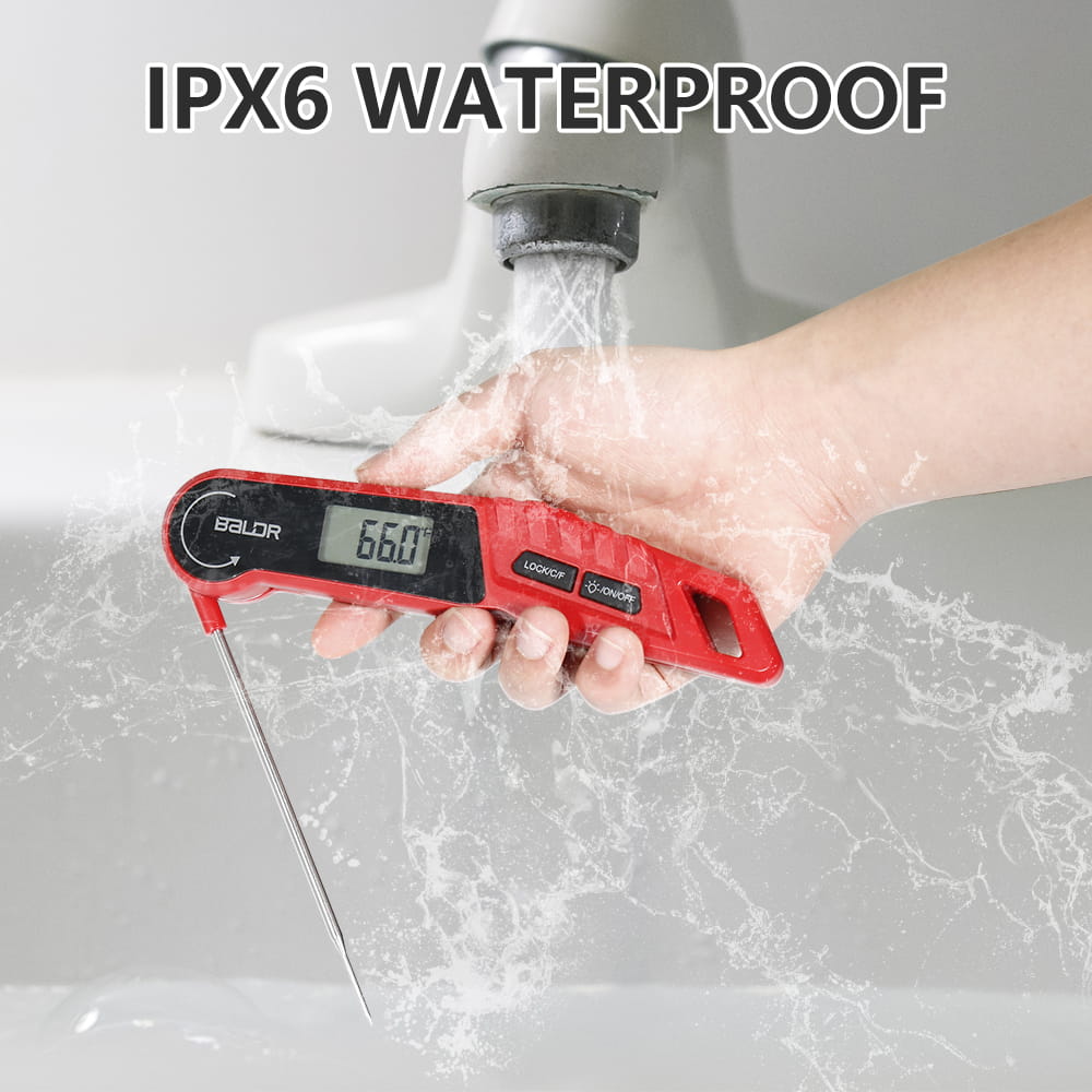 Termometry spożywcze BALDR są bardzo łatwe do czyszczenia dzięki wodoodpornej sondzie ze stali nierdzewnej przeznaczonej do kontaktu z żywnością. Umyj go pod bieżącą wodą lub wytrzyj wilgotnym ręcznikiem. UWAGA: Nie umieszczać w zmywarce.