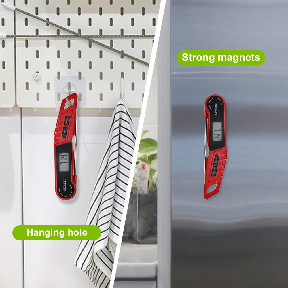 Termometr kuchenny ma składaną sondę, dzięki której można go starannie przechowywać w szufladzie lub użyć magnetycznego uchwytu lub haczyka do wygodnego przechowywania.