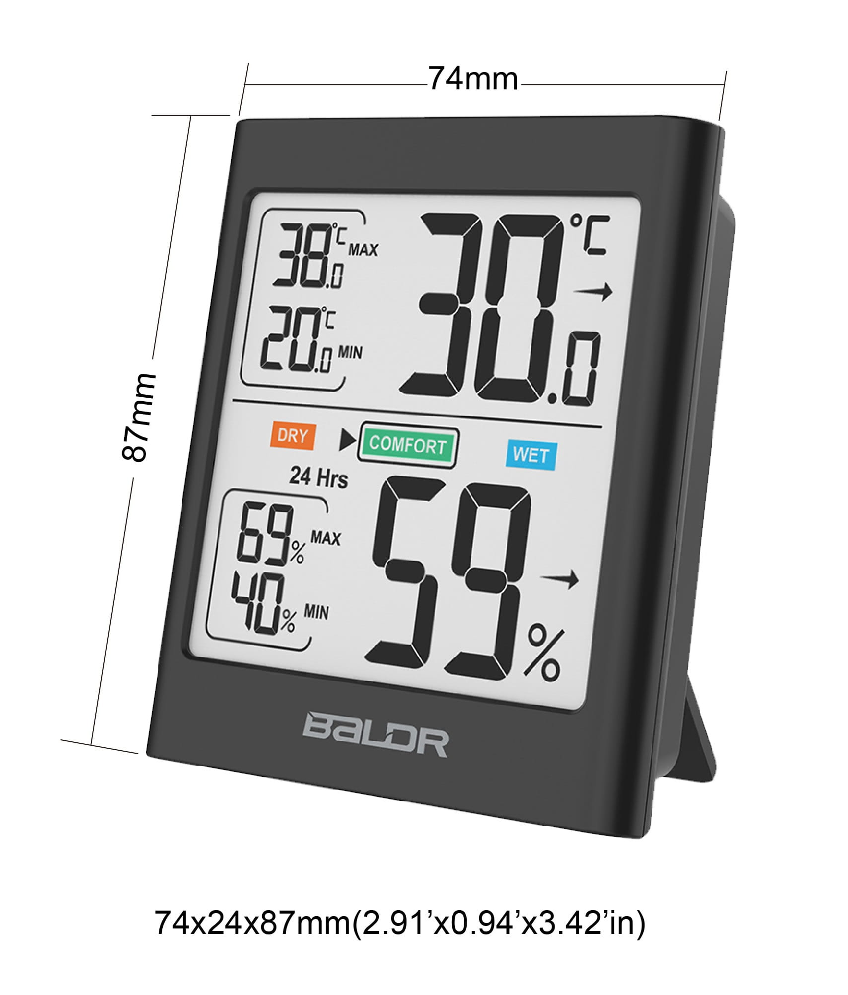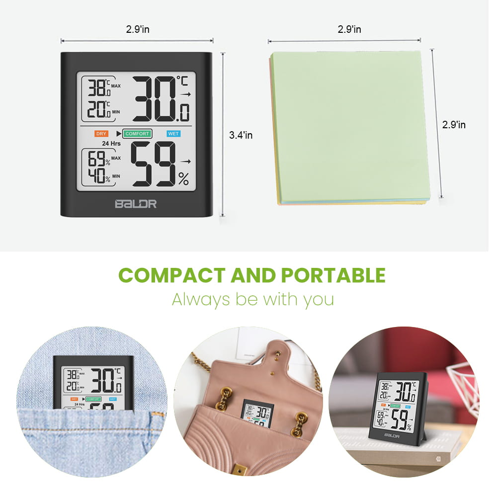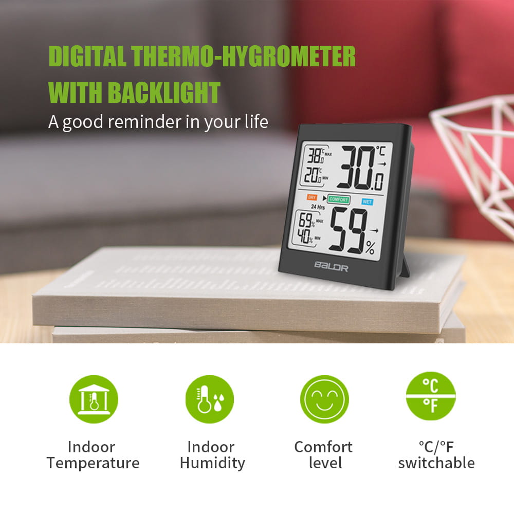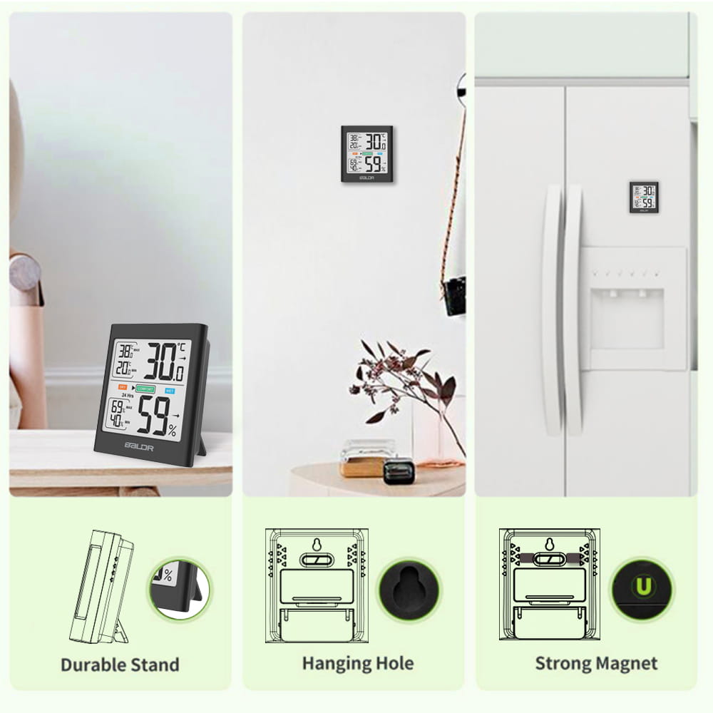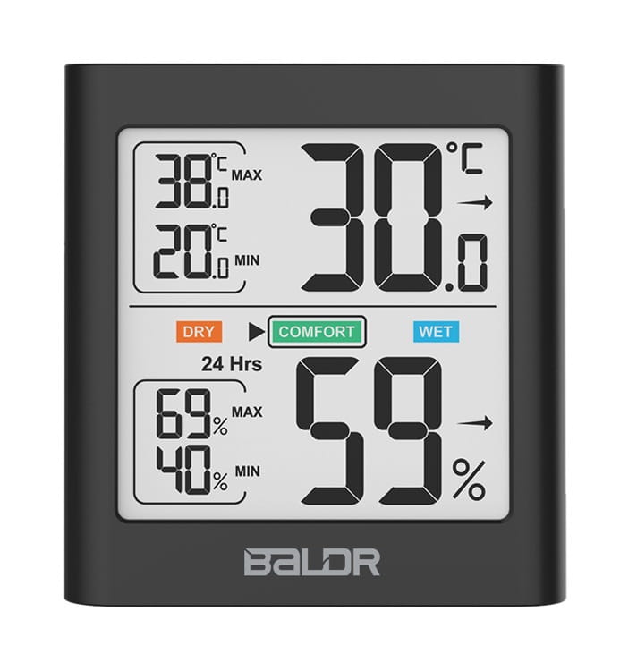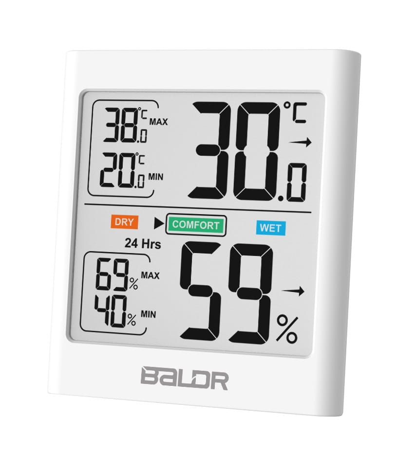 Termometr i higrometr Baldr B135 cechuje się czytelnym wyświetlaczem LCD oraz dużymi liczbami, aby zapewnić łatwy odczyt z prawie każdej odległości! W połączeniu z białym podświetleniem sprawdzenie aktualnych pomiarów jest bardzo łatwe i wygodne nawet przy słabym oświetleniu.