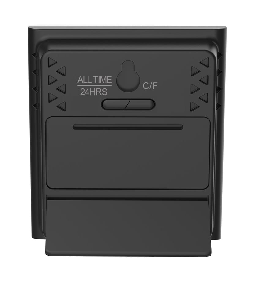 | Dodatkowe informacje | Czytelny wyświetlacz LCD | Wskaźniki trendu dla temperatury i wilgotności | Podświetlenie aktywowane czujnikiem ruchu | Wskazania temperatury w °C lub °F | Trzy sposoby montażu | Pamięć pomiarów maksymalnych i minimalnych |