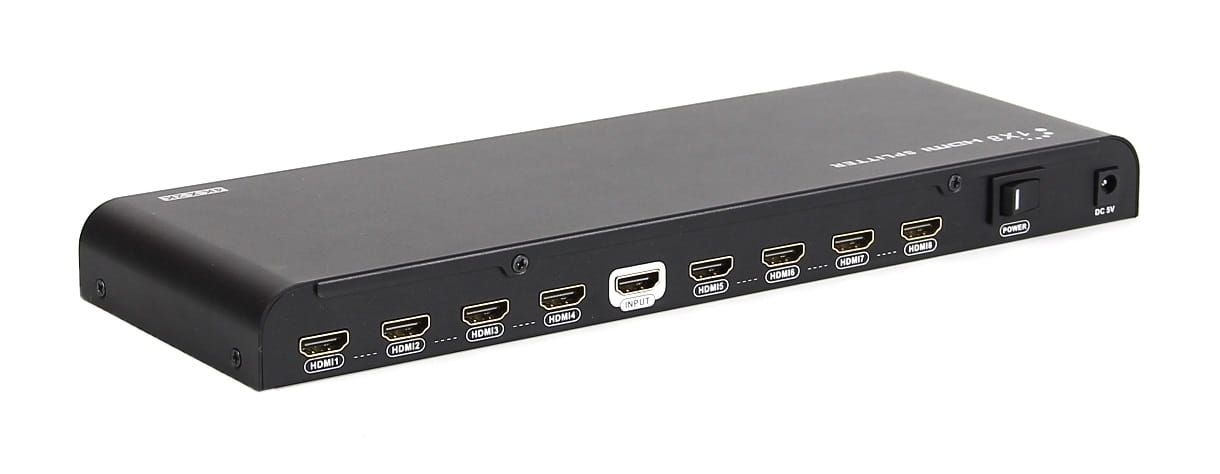 Urządzenie źródłowe podłącz do wejścia HDMI, a do 8 wyjść HDMI podłącz np. telewizory LCD, projektory itp. Splitter działa również jako wzmacniacz - wzmacnia sygnał HDMI osłabiony przez kable HDMI o znacznej długości!