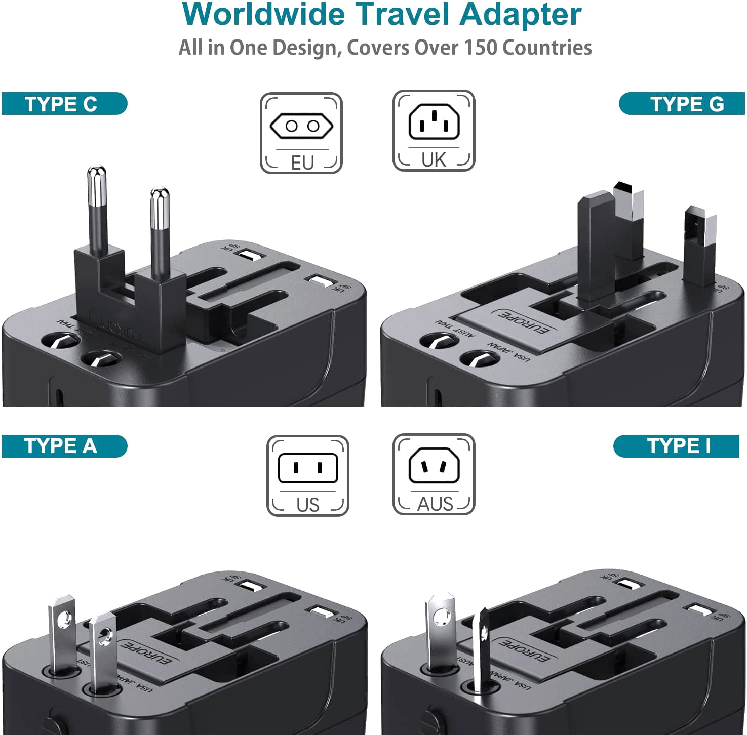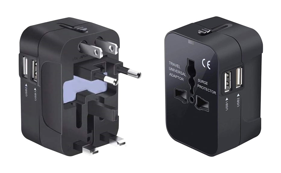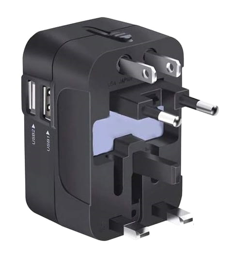 Przejściówka, adapter zasilania uniwersalny z dwoma gniazdami USB umożliwia podłączenie angielskich, amerykańskich, japońskich, europejskich urządzeń elektrycznych do angielskich, amerykańskich, japońskich, europejskich gniazdek elektrycznych.